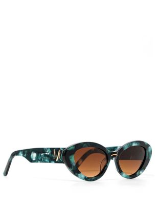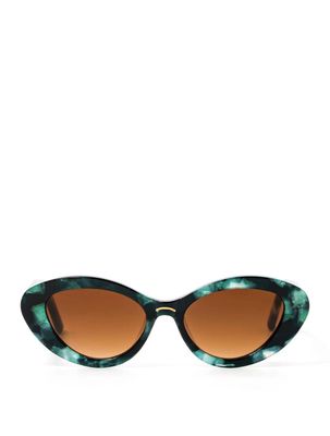 Glowella's black frames are flecked with iridescent emerald green flashes, evoking the ethereal glow of neon jellyfish gliding through midnight waters.